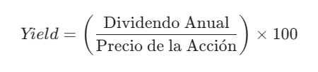 • Dividend Yield (Rentabilidad por Dividendo): Indica qué porcentaje de tu inversión recuperas al año solo en dividendos.