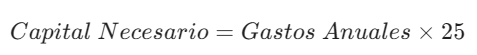 Una de las métricas más conocidas en la planificación de la jubilación es la famosa Regla del 4%. Esta regla indica que, para asegurarte de que tu dinero no se agote, deberías tener ahorrado un capital que te permita retirar el 4% anual para cubrir todos tus gastos.